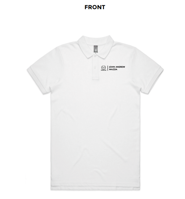 Mens Pique Polo, White, John Andrew Mazda Sales